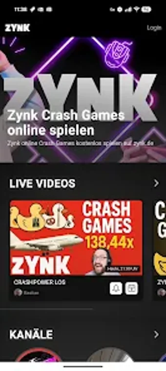 Zynk: Live Crash Game Streams เป็นแอปพลิเคชัน Android ที่มอบโอกาสให้ผู้ใช้ได้เล่นเกมครัชยอดนิยมฟรีในขณะที่มีปฏิสัมพันธ์กับชุมชนที่มีชีวิตชีวา ผู้ใช้สามารถเข้าร่วมในเกมต่างๆ เช่น Duck Racing, Flying Pearl, และ Higher/Lower ซึ่งออกแบบมาเพื่อยกระดับประสบการณ์การเล่นเกม แอปนี้อนุญาตให้ผู้เล่นแข่งขันกันเอง แชทแบบเรียลไทม์ และรับ RewardPoints ที่มีค่า ซึ่งช่วยเพิ่มตำแหน่งของพวกเขาในอันดับ